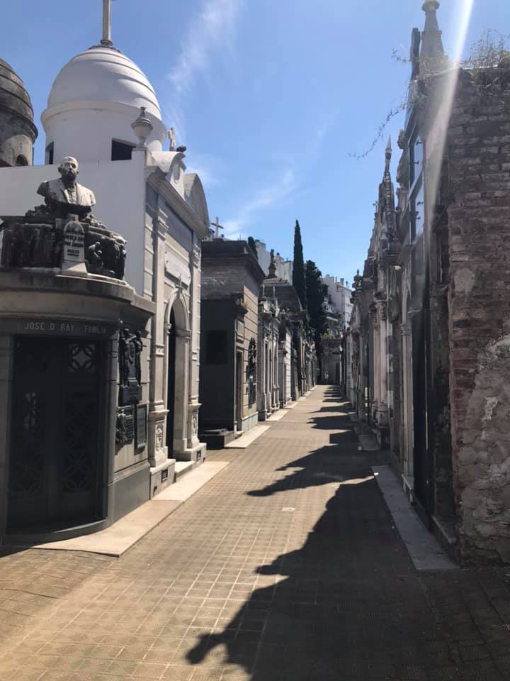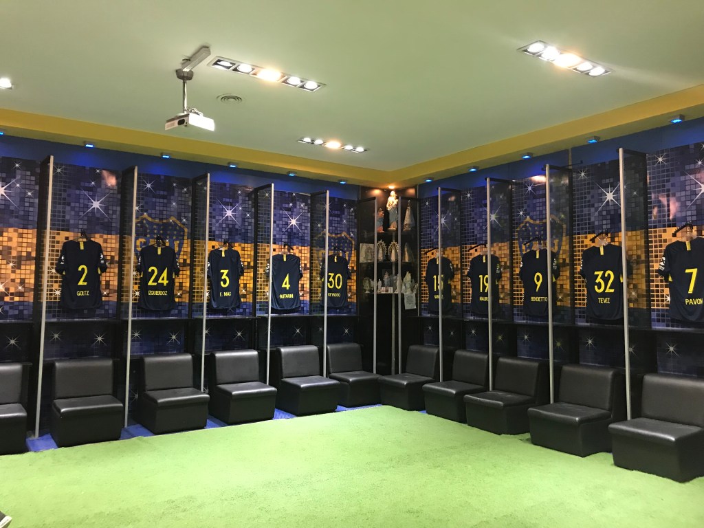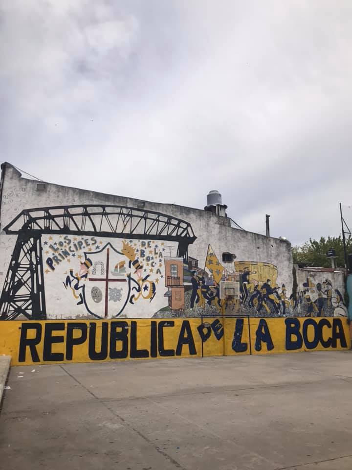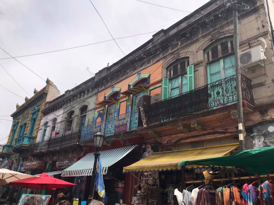Next day was our city tour with our gorgeous guide Mariela, who lives in Palermo! A gorgeous, bubbly young Spanish girl that at 50, I now envy, though in my head I’m identical to her in looks 🤣. Very knowledgeable about Buenos Aires, she tailored our tour to exactly what we wanted to see. We had a driver included, although we did have the option of a walking tour, but it was way too hot for that. The cemetery in Recoleta is a must and definitely with a guide. They know the stories of some of the more interesting mausoleums, as well as a quick route through the maze of upright graves to that of Eva Peron. A quick and very coincidental bump into Tess and Rebecca from the other night in front of Eva’s stone, then off we went for another quick one, a visit to San Telmo indoor market which was another one we’d definitely return to on a longer trip. Lastly our favourite district, La Boca. This was also the most dangerous district, especially after 5pm so it’s only recommended to go with a guide or get a regulated taxi in and out of the area. Buzzing with people on pedestrianised streets lined with colourful buildings and little shops, bars and restaurants, a tourist trap definitely. Even ‘Maradona’ (lookalike) had a seat there; for people to take photos with him. A mini anti-abortion protest entertained us for a while and then we did the obligatory football stadium tour of La Boca Juniors, one of the most famous football teams. Sadly no hunky footballers were there but I did buy my boys a baseball hat with the teams initials on it. ‘BJ’!!