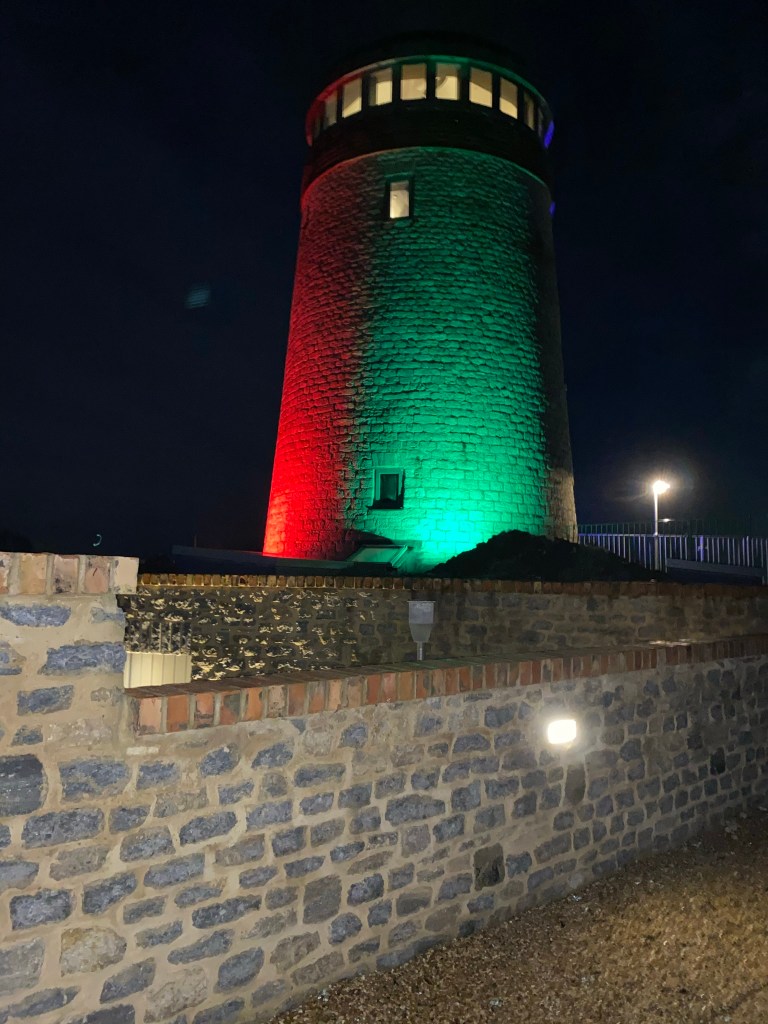 Very easy to find, with great communication and instructions from the owners Alan & Cristina, it was set back from the road, and a perfect Covid safe destination for us to spend the next few days. Contactless arrival, keys hidden, codes for the gates, we pulled up in front of the windmill adorned with its exterior lighting, always something we notice with BB (big boss or his initials depending on what mood I’m in) being a specialist, and I assume the colours were set for a Christmas theme, being mainly red and green.
