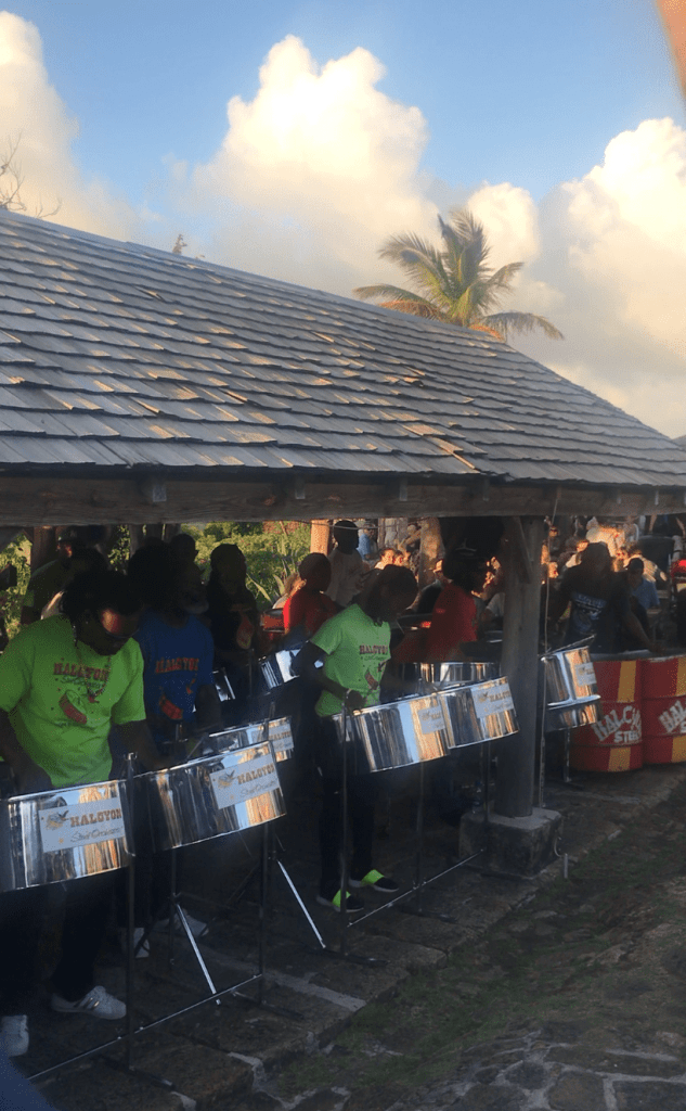 We stopped for a quick bite at Hemingway’s, a busy oasis for the above mentioned cruisers during the day, so maybe a night time visit is better. It’s a rooftop cafe not far from the shopping centre of Heritage Quay, we had a little mooch around the shops there afterwards and there were some gorgeous little independent shops full of handmade jewellery and other crafts, all duty free. The second place we visited was Shirley Heights, a bit touristy but another ‘must do’ if you’re there. Sunset cocktails from the bar, which was a bit of a bun fight, a few artisan market stalls, and the obligatory Caribbean steel band, to sing in the sunset.