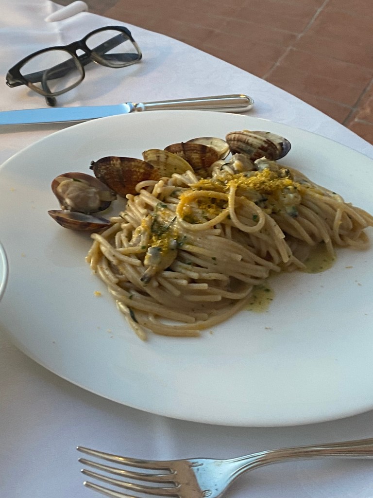 The beach restaurant was nice and casual, salads, sandwiches or fish/meat selection, all the Italians eat at 1pm (il tocco!). You don’t need a watch in Italy. You will see everyone get up from their sunbeds, leave the office, close the shop or showroom, batton down the hatches and ticket offices at around 2 minutes to one to get ready for lunch at 1pm, so if you want a late lunch, get there around 2, because most places stop serving food around 3pm.