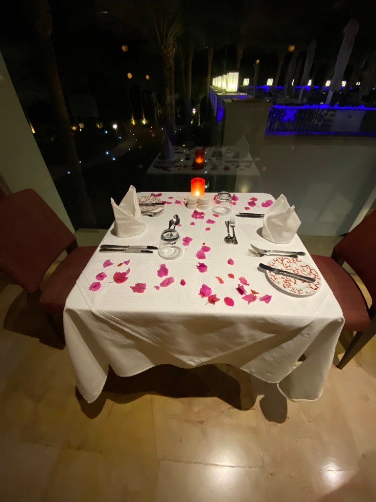 We arrived late at night, and the hotel anticipated this so kept the buffet restaurant open for latecomers. We ordered a la carte, which is unusual at this resort as most go for the all-inclusive or basically all-you-can-eat basis. There are a number of restaurants to choose from and each time we booked a table for 2 we got the full romantic experience!