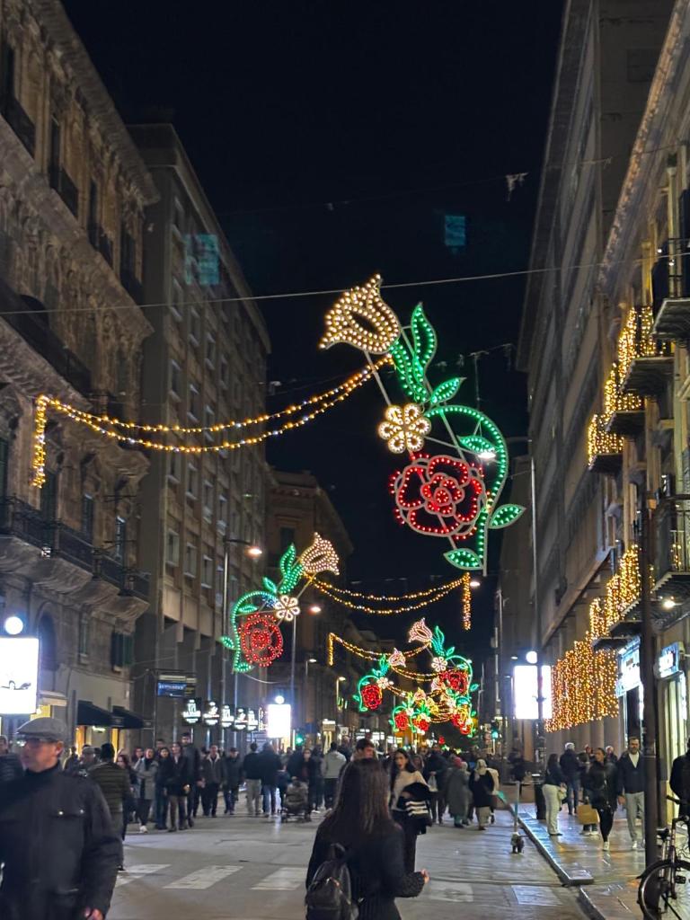On the other side of the square was the main drag to meander down. Via Ruggiero Settimo. We walked up and down this street a few times to get to and from the hotel. It was only a few days until Christmas, so the decorations were at their peak! It’s a great street to mooch in full of shops and bars and restaurants. This is where the whole world goes by. Keep walking and walking.