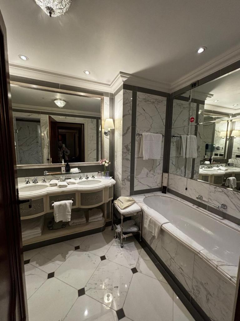We hadn’t even made it upstairs to our room before stumbling into their signature sabrage ritual. Talk about an entrance! A masterful waiter, a gleaming sabre, a bottle of champagne… and a performance full of theatrics. It set the tone instantly.