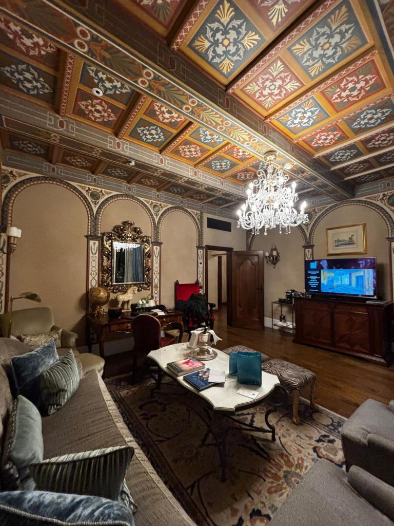 Our suite was named Palazzo Pitti, part of the hotel’s charming tradition of naming rooms after landmarks in Florence. It was enormous—two bedrooms, two bathrooms, a walk-in wardrobe, a hallway, a lounge, and not one but two terraces overlooking the Arno. The view was breathtaking. We only managed a few sips of wine on the balcony before deciding to make the most of our limited time and head upstairs to enjoy a bottle of Super Tuscan in our lounge.