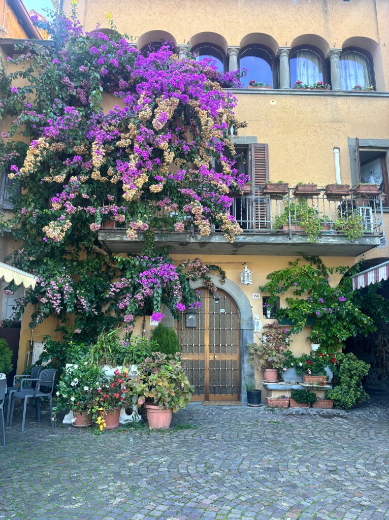 On our way back to drop our friends at the airport, we stopped in Bergamo. Again, not really thought of as a great tourist destination but actually a really pretty city. Especially the Alto part. You can take a cable car up there. You can also walk. Be warned, if you have dogs, they need to be muzzled! Cobbled streets wind between stone buildings, opening onto gorgeous piazzas. Views over the terracotta rooftops to the city below. Alta feels timeless and cinematic.