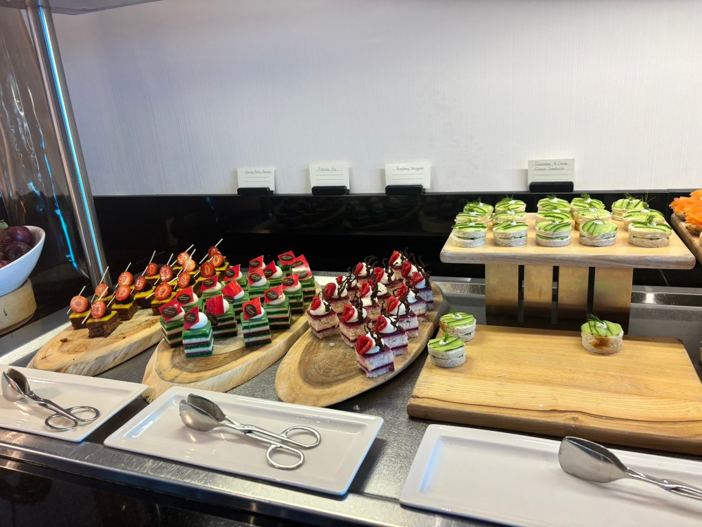 Breakfast, when we woke up early enough, was whatever we wanted on the executive floor. Lunch became a daily ritual either upstairs for complimentary sandwiches, scones, soft drinks, or poolside for club sandwiches, mac & cheese, vibrant green salads, fresh juices — relaxed, easy and exactly what sunshine demands.